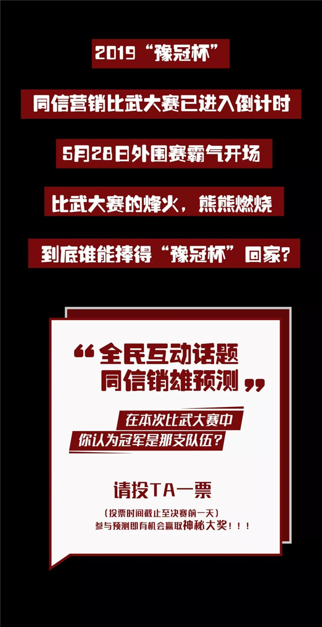 2019“豫冠杯”同信營銷比武大賽重磅來襲 點(diǎn)擊原文參與預(yù)測